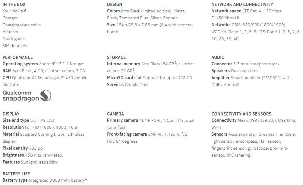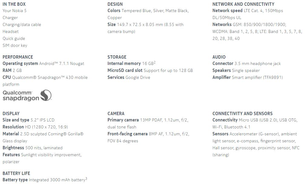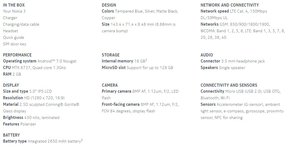 Lastly, Nokia announced its low-end device the Nokia 3 a low-budget device that meets everyone’s budget expectation. The phone costs around USD 147. Like its sibling, the Nokia 3 too is made of a single block of Aluminum. Despite being a low-budget device the device has a premium Aluminum finish and specs wise the device doesn’t let down either. The Nokia 3 establishes a balance when it comes to front and rear cameras as both are 8-megapixel cameras; putting an emphasis on the importance of selfies. The Nokia 3 comes in four colors. The rest of the specs are as follows: